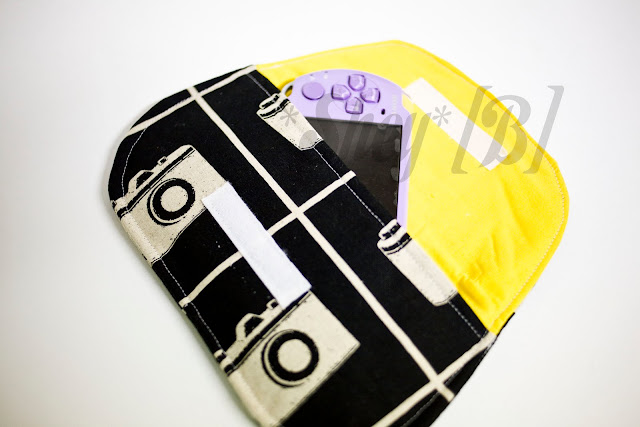 I love this clutch. It velcro's closed. Super easy to just keep your camera in and when you need it it's there. Of course, custom orders are welcome, so contact me for a custom fabric order.